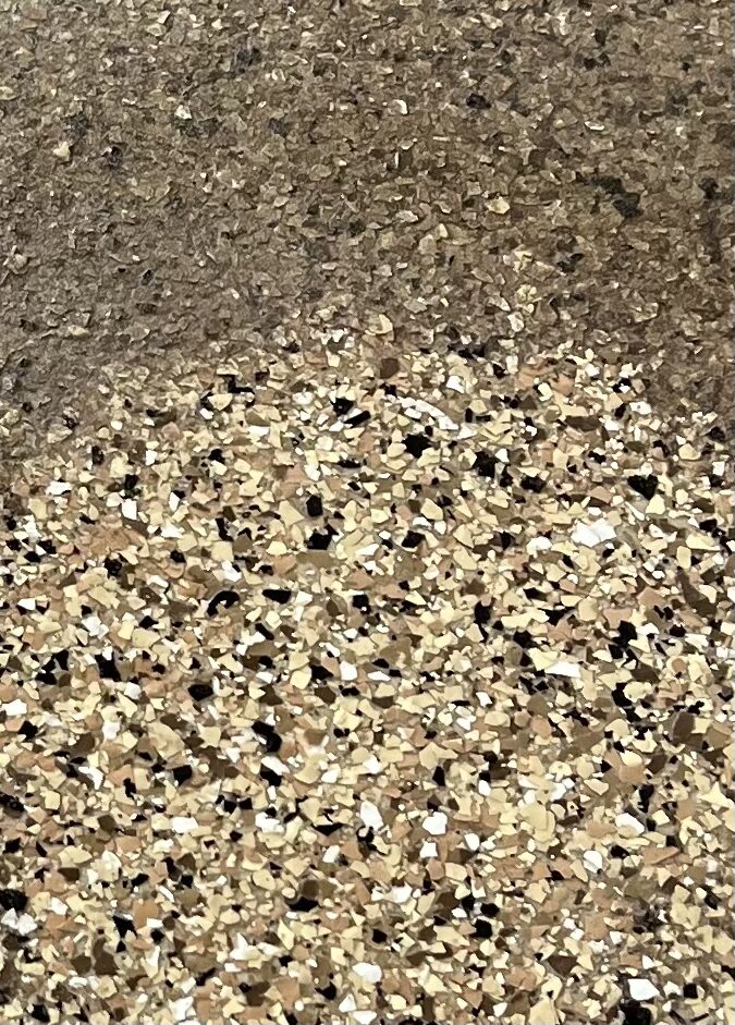 - Broadcasting color decorative flakes — adds texture and slip resistance